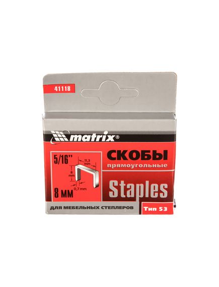Скобы 8 мм для мебельного степлера тип 53 1000 шт MATRIX 41118