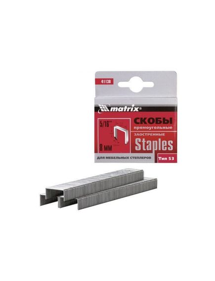 Скобы 8 мм для мебельного степлера заостренные тип 53 1000 шт MATRIX 41138