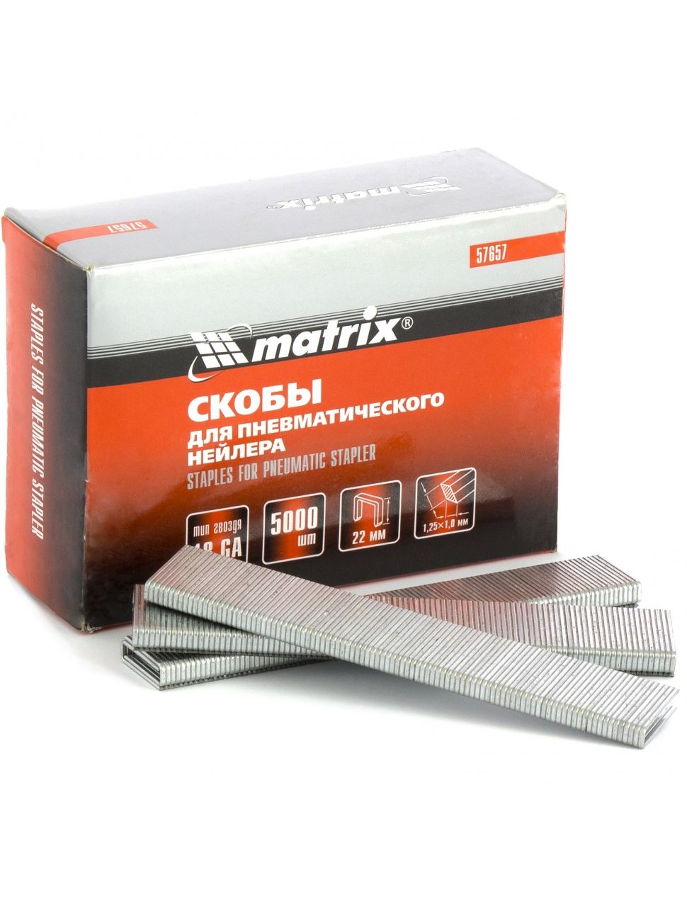Скобы для пневматического степлера 18GA 1.25 х 1 мм длина 22 мм ширина 5,7 мм 5000 шт MATRIX 57657