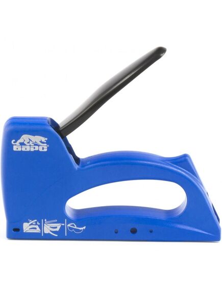 Степлер БАРС 40001 предназначен для быстрого крепления листового материала (оргалита, фанеры, ДСП, ДВП, пленки, утеплителя) к деревянному основанию. Корпус степлера изготовлен из пластика методом литья. Быстрая загрузка скоб в скобоприемник.