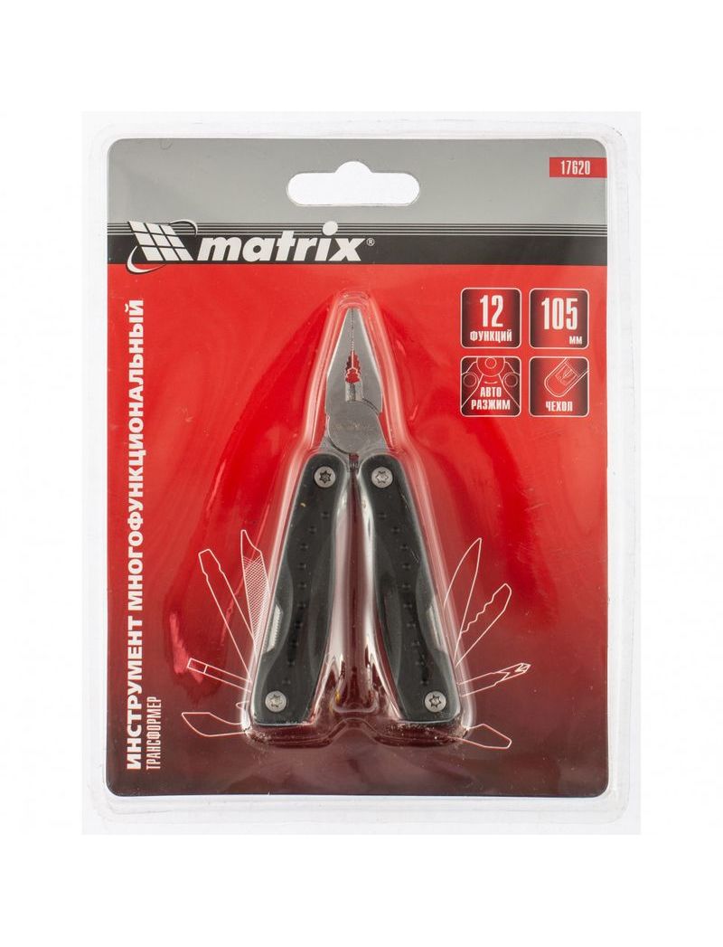 Трансформер MATRIX, 12 функций, авторазжим, компактный размер, в чехле, 105 мм 17620 — незаменимая многофункциональная вещь. Пригодится в гараже, на природе, на даче, в поездке. Наличие системы авторазжима обеспечивает удобство использования инструмента. Благодаря защитному чехлу мультитул удобно хранить и транспортировать.