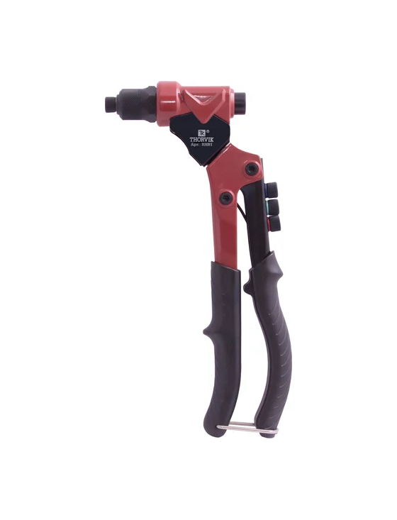 Ручной рычажный заклепочник THORVIK предназначен для работы с резьбовыми заклепками. Заклепочник имеет алюминиевый корпус и рычаги, изготовленные из закаленной углеродистой стали.