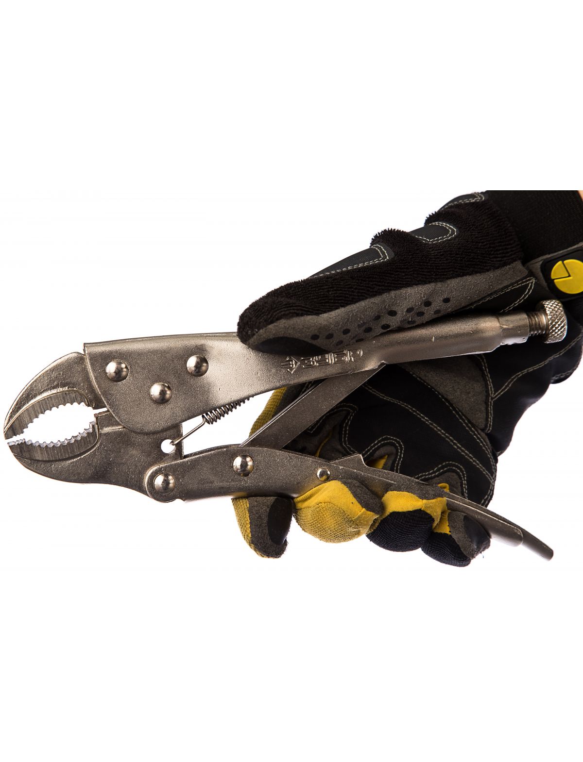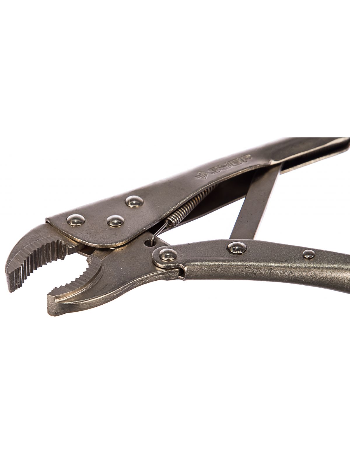 Ручной зажим Зубр МАСТЕР 250 мм 22520 используется для фиксации заготовок во время выполнения сварочных работ. Фиксация осуществляется путем сжатия рукояток инструмента за счет особой конструкции блокирующего механизма. Поверхность губок закалена, что обеспечивает прочность и долговечность. С помощью специального винта можно отрегулировать усилие прижима соединяемых деталей, имеющих разную толщину.