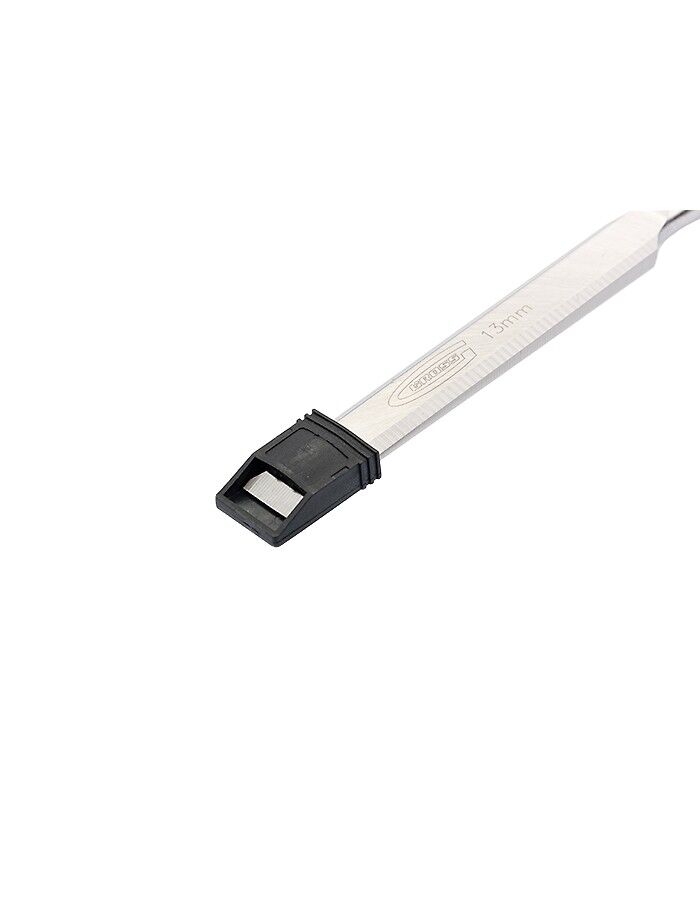 Долото-стамеска 13 мм GROSS 25005 предназначена для проведения столярных и плотницких работ, таких как выдалбливание пазов и гнезд, снятие фасок и шлицов и пр. Полотно стамески изготовлено из высококачественной инструментальной стали, обладая высоким параметром твердости (68 HRC). Рабочая кромка полотна шириной 13 мм заточена под углом 28 градусов и закалена на длину 7 мм. Литая двухкомпонентная рукоятка обеспечивает надежный и удобный захват. Металлический затыльник рукоятки позволяет при необходимости использовать ударный инструмент.