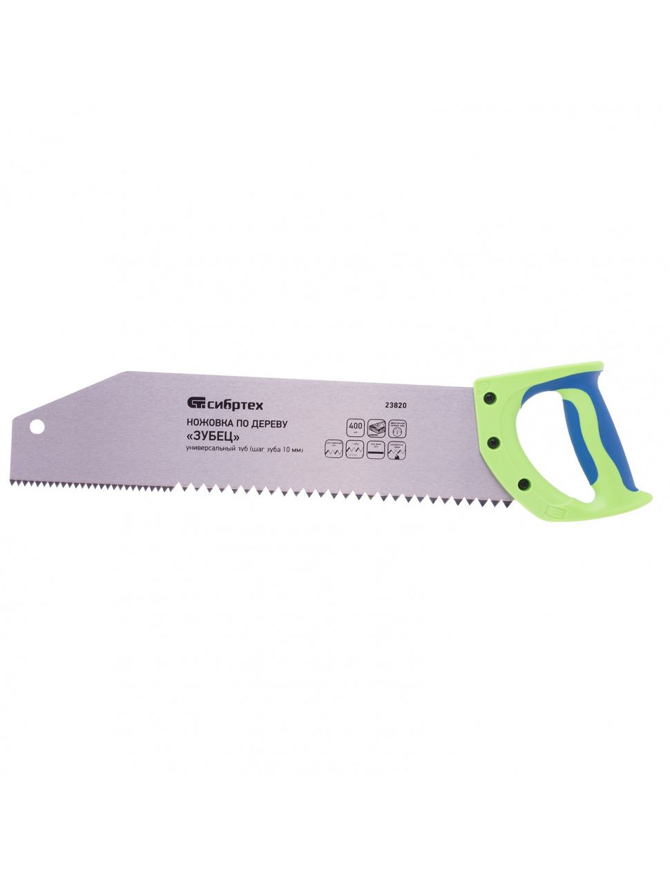Ножовка по дереву 400 мм СИБРТЕХ Зубец 23820 обладает особой конструкцией, для продольного и поперечного распила древесины. Безопасную и комфортную работу обеспечивает двухкомпонентная рукоятка. Полотно изготовлено из легированной стали, что обеспечивает длительный срок эксплуатации.
