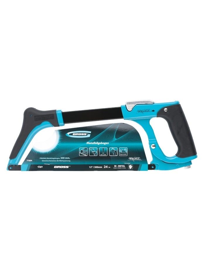 Ножовка по металлу 300 мм GROSS PIRANHA 77604 обеспечивает точное и чистое пиление. Полотно изготовлено из биметалла и имеет зубья из быстрорежущей стали. Данный инструмент используется для пиления небольших в диаметре металлических заготовок.