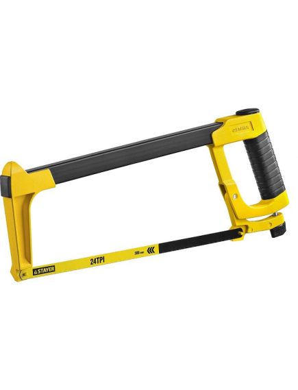 Ножовка по металлу Stayer PRO-Cut RX500 1579_z02 используется для резки металлических заготовок. Режущая часть выполнена из прочной стали. Рамка из металла оснащена отсеком для хранения сменных полотен. На металлической ручке расположены резиновые накладки для удобства применения и исключения скольжения ножовки в руке. Натяжение рабочей части регулируется.