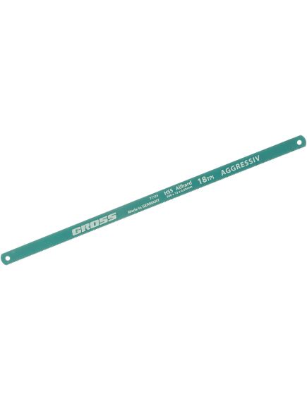Полотно для ножовки 300 мм HSS GROSS 77725 предназначено для распиловки изделий из твердых материалов: цветных металлов, нержавеющей стали, пластмассы. Изготовлено полотно из быстрорежущей (HSS) немецкой инструментальной стали размером 300х13 мм. Шаг зубьев полотна составляет 18TPI и рекомендуется для быстрого распила крупных изделий.