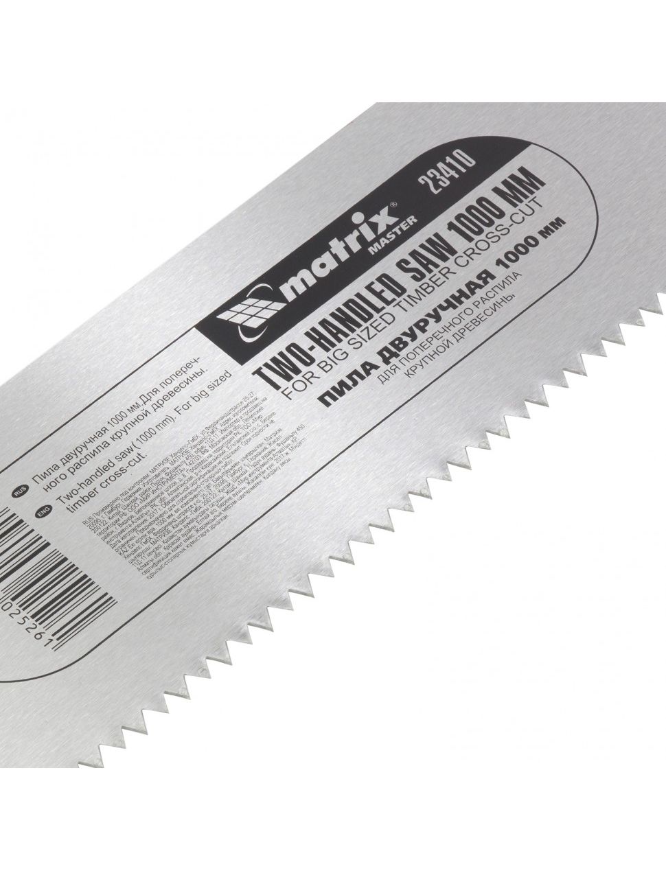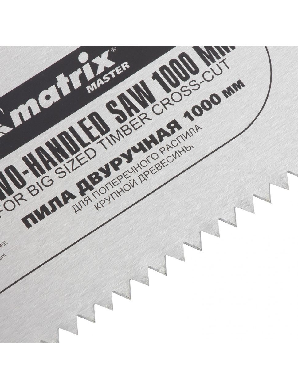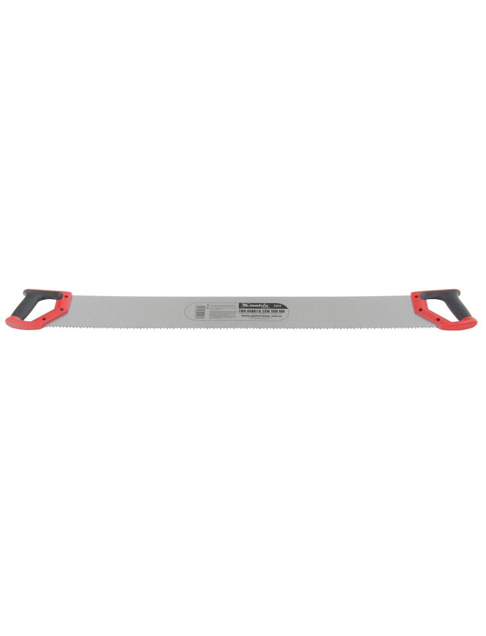 Двуручная пила 1000 мм MATRIX 23410 используется для распила древесины. Рабочая часть изготовлена из холоднокатаной стали марки 65 Mn. Острозаточенные зубья ножовки позволяют выполнить работу быстро и качественно. Пила оснащена двумя пластмассовыми двухкомпонентными рукоятками, которые удобны для захвата и не скользят в руке во время работы.