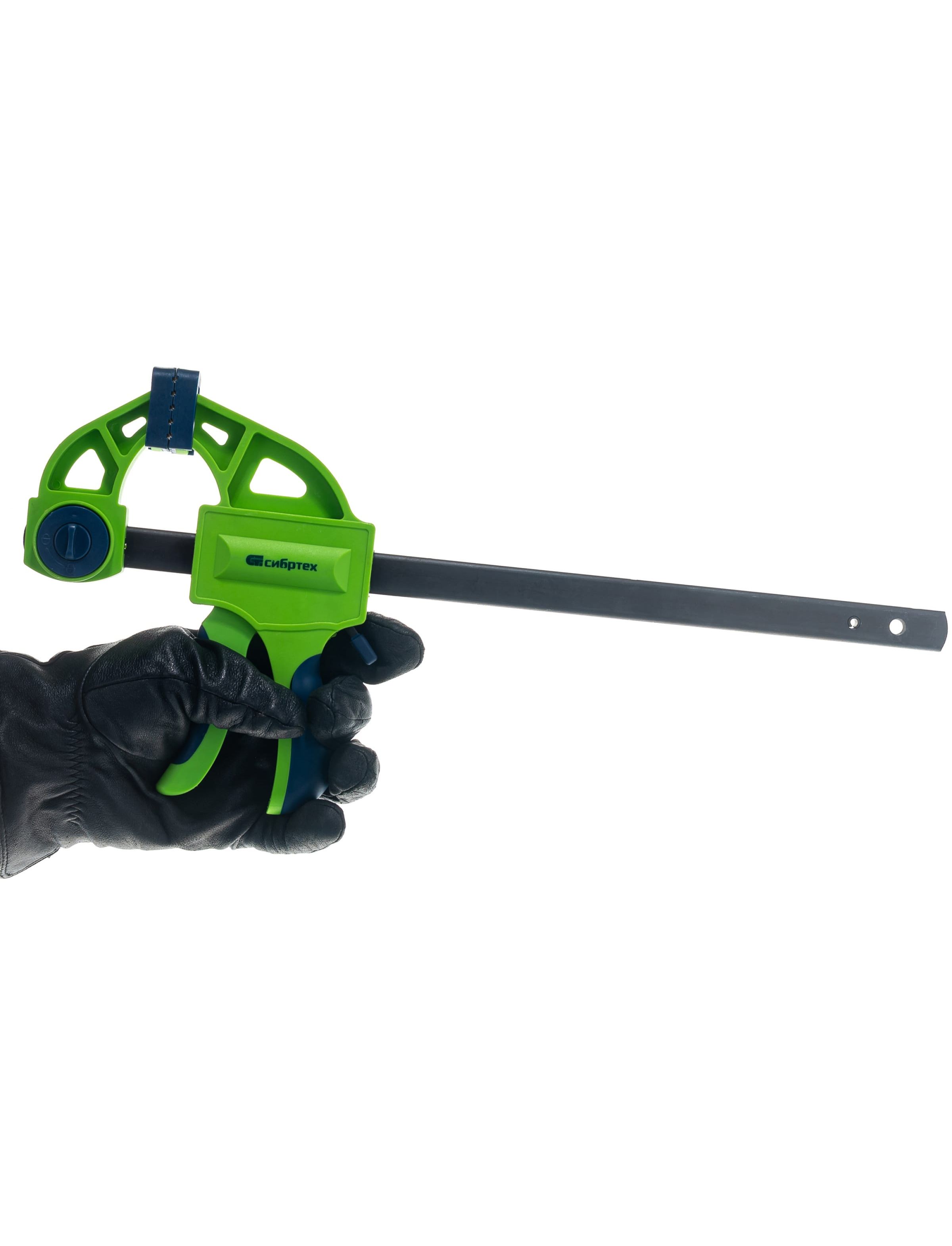 F-образная быстрозажимная струбцина Сибртех 20564, 200 х 70 х 420 мм, в пластиковом корпусе, с фиксатором и двухкомпонентной рукояткой, позволяет зажимать заготовки для их дальнейшей обработки или сборки. Помогает решать множество задач благодаря оптимальной глубине зажима, составляющей 70 мм. Пластинчатый механизм пошагово перемещает подвижную губку вдоль направляющей до достижения максимально плотного захвата детали. Фиксатор препятствует движению губки в обратную сторону. Струбцина пригодится в столярной мастерской, а также будет полезна в быту.