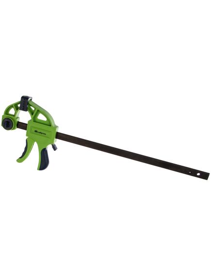 F-образная быстрозажимная струбцина Сибртех 20565, 300 х 70 х 540 мм, в пластиковом корпусе, с фиксатором и двухкомпонентной рукояткой, позволяет зажимать заготовки для их дальнейшей обработки или сборки. Помогает решать множество задач благодаря оптимальной глубине зажима, составляющей 70 мм. Пластинчатый механизм пошагово перемещает подвижную губку вдоль направляющей до достижения максимально плотного захвата детали. Фиксатор препятствует движению губки в обратную сторону. Струбцина пригодится в столярной мастерской, а также будет полезна в быту.
