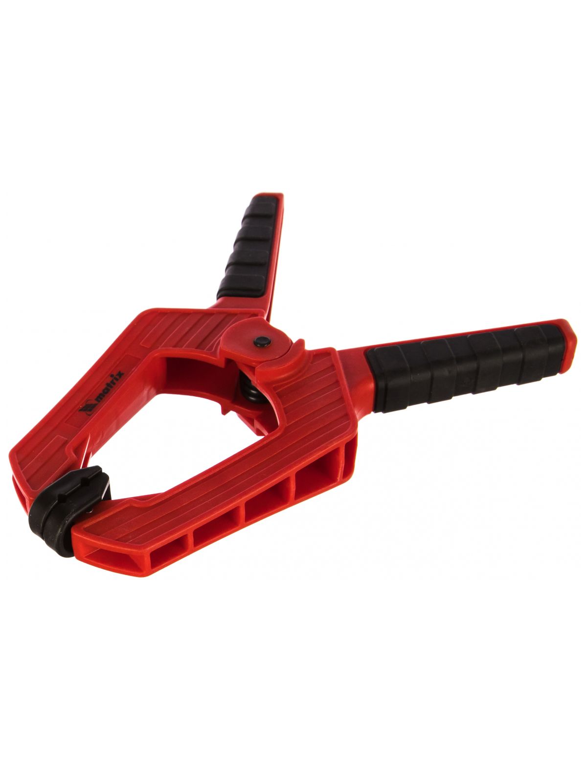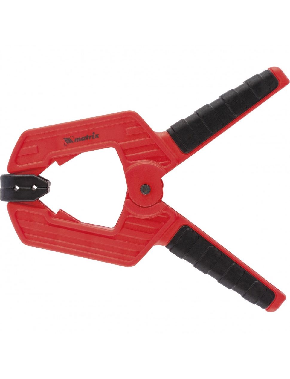 Клещеобразная струбцина, усиленная, пластиковый корпус, двухкомпонентные рукоятки MATRIX 20794 оснащена усиленной пружиной, которая позволяет эффективно зажимать детали из различных материалов. Ударопрочный пластиковый корпус не раскалывается при резком отпускании рукояток.