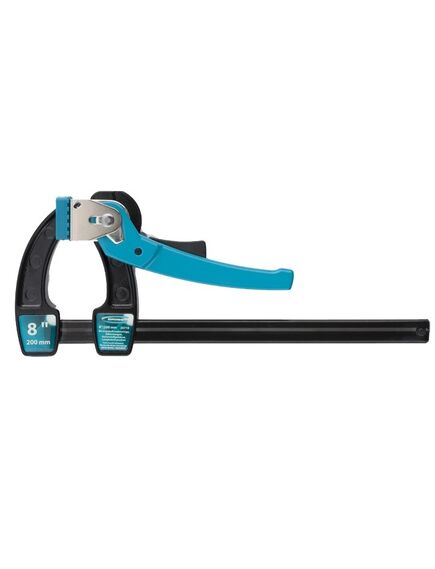 Реечная быстрозажимная струбцина, металлический корпус,рычажный храповый механизм, 8"/200 мм GROSS 20719 - удобный инструмент для мастерской. Изделие упрощает сборку и обработку различных деталей. Прочный металлический корпус выдерживает сильное давление.