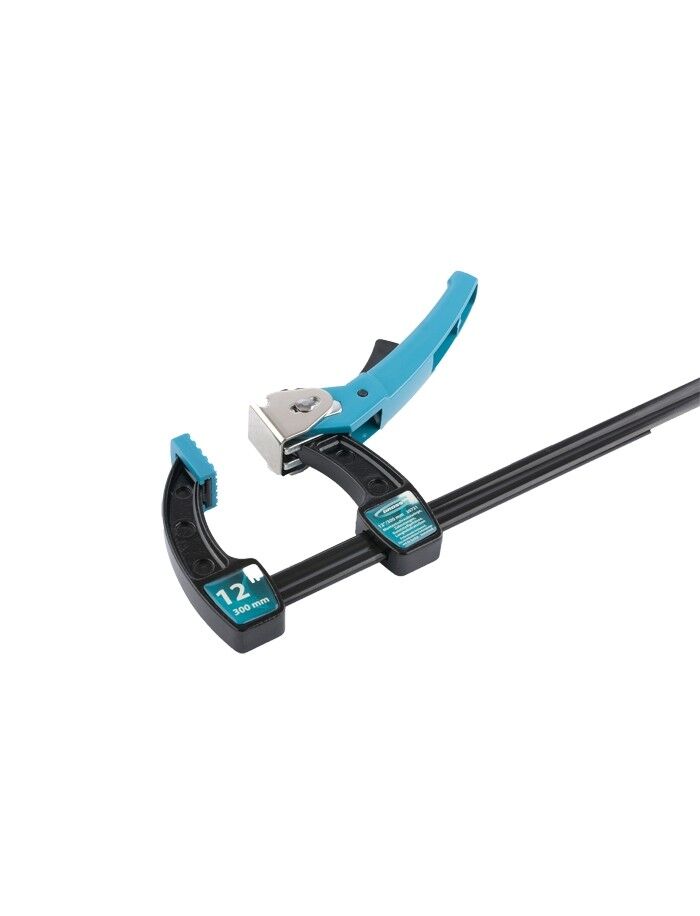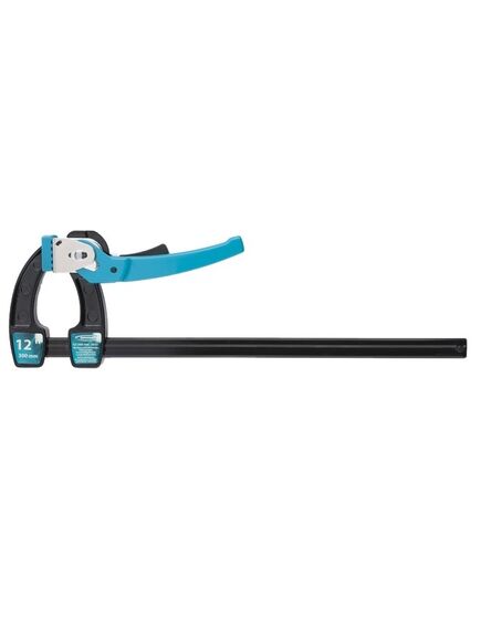 Струбцина реечная быстрозажимная 12, GROSS 20721 предназначена для фиксации различных деталей толщиной до 300 мм. Глубина зажима 95 мм. Имеет высокопрочную стальную направляющую. Данная модель оснащена стопорным механизмом, который создает усилие в 1200 Н. Для бережного крепления деталей на прижимной губке предусмотрена резиновая накладка.