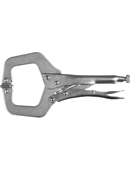 Точечный ручной зажим 250x50 мм STAYER PROFI PRO-Fix 22476 - это усиленное приспособление из кованой стали с тщательно закаленными захватными частями. Инструмент служит для эксплуатации в области слесарных, монтажных, ремонтных и сварочных работ.