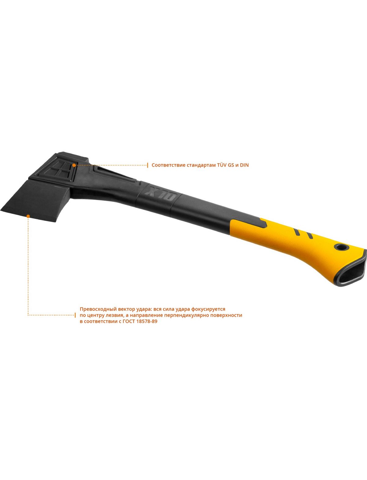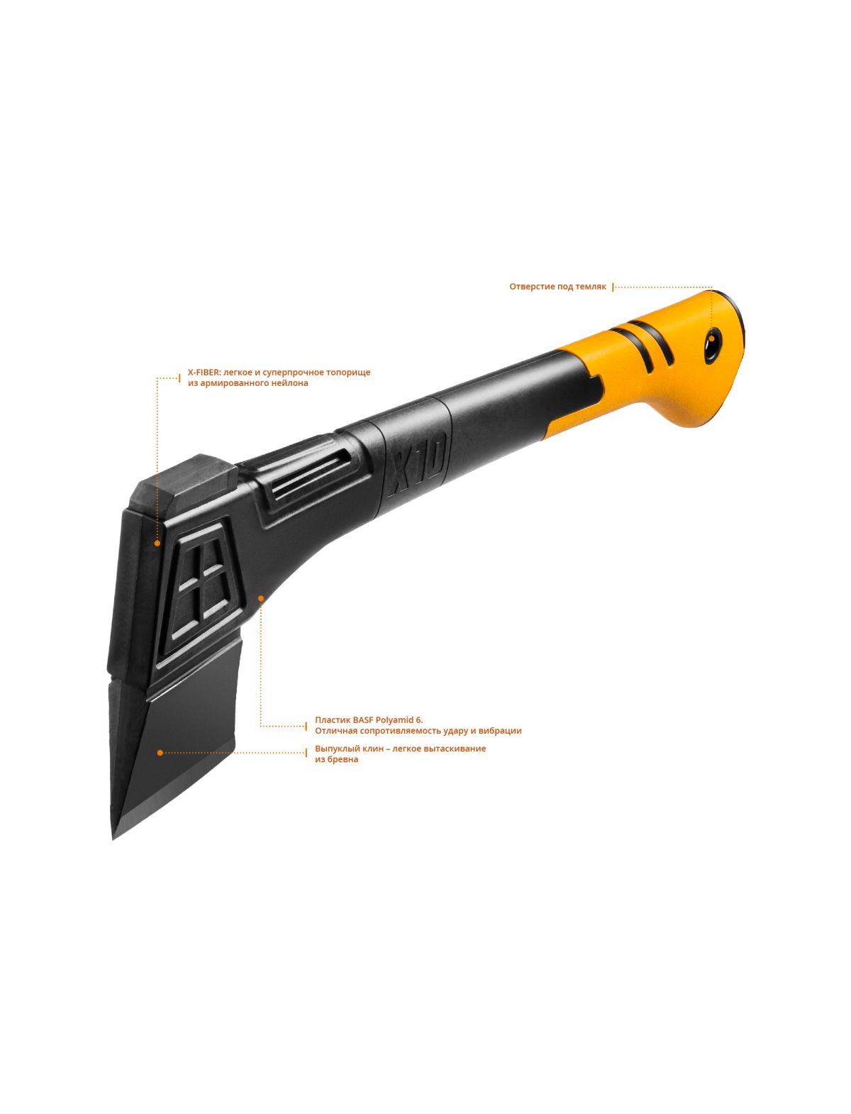 Универсальный топор с рукояткой из армированного нейлона Kraftool X10 1000 г 20660-10 - это профессиональный надежный инструмент немецкого производства. Топорище выполнено из армированного нейлона X-Fiber - инновационный материал, прочный как металл, но при этом имеет малый вес. Кованая голова из углеродистой стали и рукоятка надежно соединены в одно целое, что исключает выпадение лезвия. Система MAX POWER создает оптимальный баланс центра тяжести, что обеспечивает максимальную силу удара.