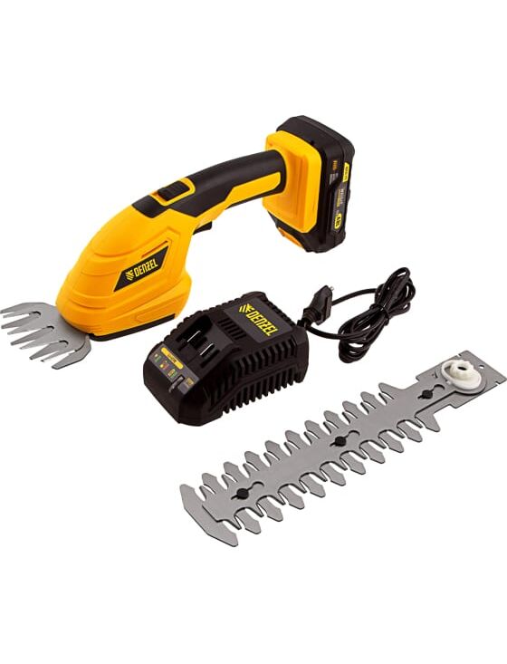 Аккумуляторные ножницы-кусторез Denzel CGS-100 18 В 59430 – практичный инструмент для ухода за живыми изгородями и кромками газона.