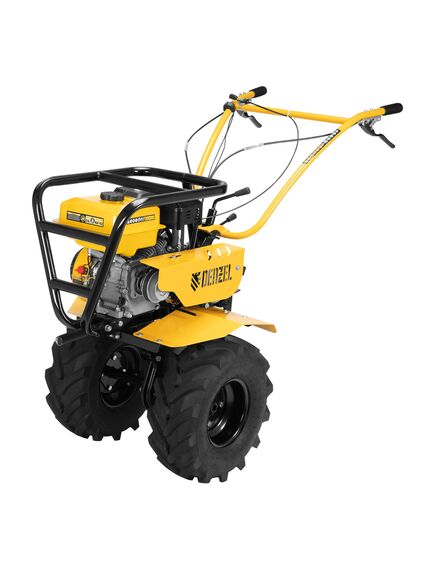 Мотоблок Denzel DPT-470S-PRO 56445 с ременным сцеплением, двигателем объемом 212 см3 и мощностью 7 л.с., с коробкой передач 4 вперед/2 назад и шкивом отбора мощности, комплектуется 24 фрезами (3х4). Предназначен для выполнения земляных работ: прополки, вспахивания, боронования грунта, перевозки грузов и т.д.