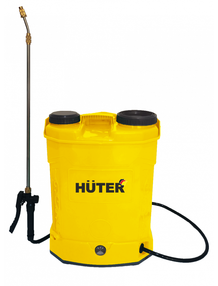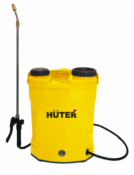 Аккумуляторный опрыскиватель Huter SP-16AC имеет рукоятку для удобства переноски. Ремни ранцевой системы регулируются, равномерно распределяя вес, и предотвращают усталость во время длительной работы. Жесткая накладка с ячеистой поверхностью обеспечивает вентиляцию воздуха и комфорт для спины. Световой индикатор заряда батареи позволяет контролировать его уровень. Шланг длиной 1,5 м и телескопическая штанга длиной 1 м позволяют обрабатывать даже высокие деревья. В комплекте насадки для широкого и точечного распыления, а также для образования тумана.