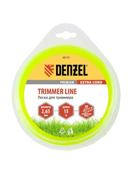 Леска Denzel 96125 Extra cord применяется в качестве режущего материала в мощных бензиновых триммерах. Леска квадратной формы сечения изготовлена из двухкомпонетного материала: сердечник - из высокопрочного полиамида ТМ BASF, внешний слой - из высококачественного нейлона. В поставку входит блистер с леской длиной 15 м и диаметром сечения 2,65 мм. Благодаря двухкомпонентной структуре леска более прочна и устойчива к износу, имеет увеличенный ресурс работы - до 40 % по сравнению с традиционной леской. Применяется для скашивания густой и жесткой травы, молодого кустарника и бурьяна на запущенных участках.