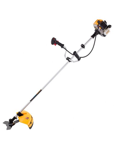 Бензиновый триммер Denzel DR-25 96270 с двигателем объемом 25 см3 и неразъемной штангой состоит из 2 частей. Срезает траву и растительность с жесткими стеблями (полынь, крапиву, лебеду) на обширной территории, включая труднодоступные места вдоль стен дома, заборов, вокруг насаждений. В качестве режущей оснастки используется стальной трехлопастный нож и усиленная катушка из полиамида с леской. Скорость их вращения составляет 9500 об/мин, а ширина скашивания — 25,5 см и 42 см. Одноцилиндровый двухтактный двигатель мощностью 1,3 л.с. работает на смеси бензина с маслом. В комплект поставки входит удобный дозатор для приготовления топлива, что облегчает обслуживание триммера. Благодаря отсутствию сетевого кабеля триммер может использоваться вдали от дома.