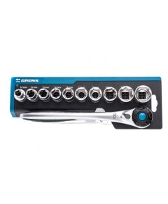 Набор торцевых головок, трещотка 120 зубьев, 12 предметов GROSS 14141 предназначен для слесарно-монтажных работ. Может использоваться автолюбителями и на станциях технического обслуживания автомобилей, подойдет для ремонтных работ в быту. Торцевые головки и трещотка выполнены из высокопрочной...