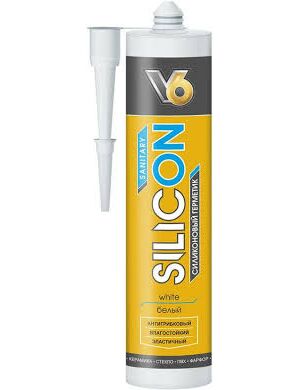 Герметик силикон V6 санитарный белый антигрибковый 260мл