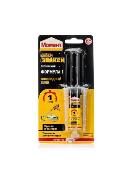 Универсальный эпоксидный клей Момент Супер Эпокси Формула 1 в шприце обеспечит вас комфортным, прочным и невероятно быстрым склеиванием при работе практически с любыми материалами.