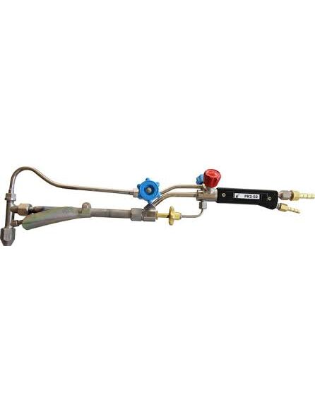 Резак керосино-кислородный РК2-02М, входящий в комплект оборудования для резки стали на жидком горючем КЖГ-2, предназначен для ручной разделительной резки углеродистых и низколегированных сталей с использованием для подогревающего пламени смеси кислорода с керосином.