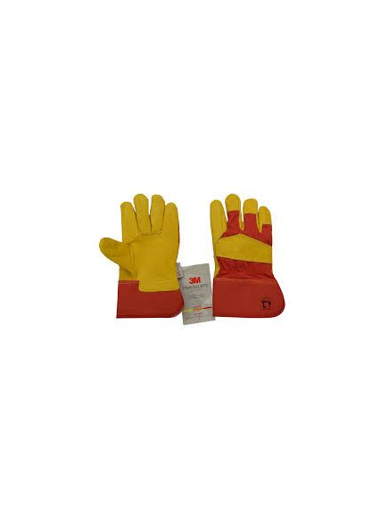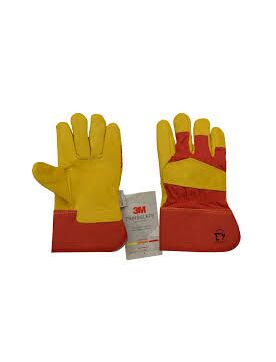 Перчатки комбинированные, плотная смесовая ткань красного цвета с кожей КРС желтого (золотого) цвета.
