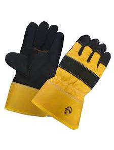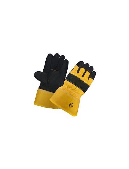 Перчатки комбинированные из качественного говяжьего спилка (толщина 1,2мм) и смесовой ткани. Цельнокроеная ладонь из спилка. Манжет - жесткая крага. Утеплены искусственным мехом.