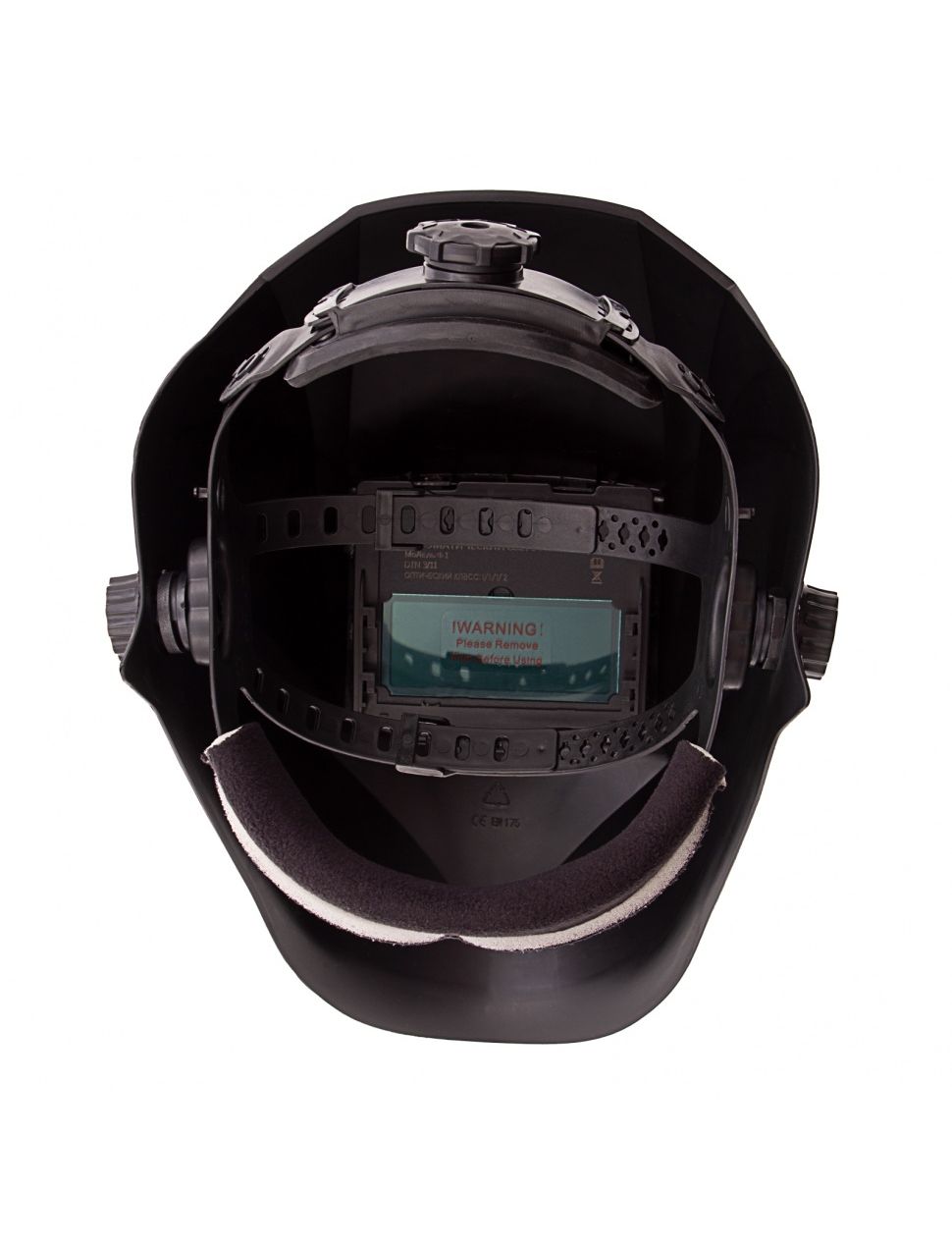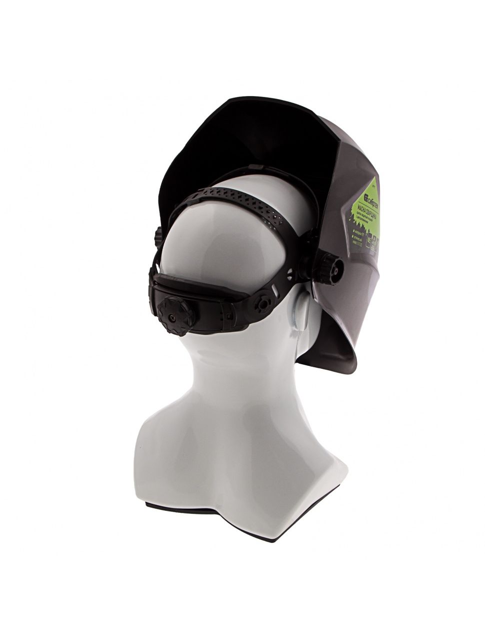 Защитный лицевой щиток, или маска сварщика, Сибртех Ф5 89177 с автозатемнением, упакованный в картонную коробку, закрывает глаза, лицо и шею мастера от света дуги, искр, ультрафиолета и горячих брызг. Предохраняет также от ожогов вследствие высоких температур во время сварочных работ.