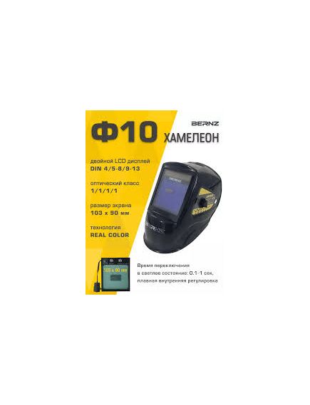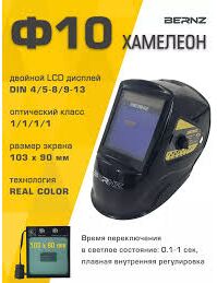 Маска сварщика "ХАМЕЛЕОН" Ф10 PRO, 103*90 мм, DIN 4, в коробке, с автоматическим светофильтром, защищает от яркого светового, ультрафиолетового и инфракрасного излучения, брызг расплавленного металла и искр. Применяется при выполнении сварочных работ, резки и пайки металла.